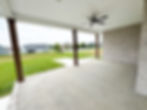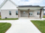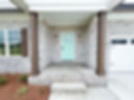 The white garage door has a farmhouse light fixture. We added additional concrete to connect the driveway to the back patio and porch.